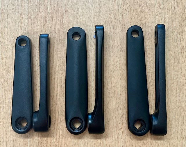 To keep the width of the pedals (Q-factor) narrow enough, you need straight cranks in a velomobile. Now we have more choice in that. These are 30,- per set