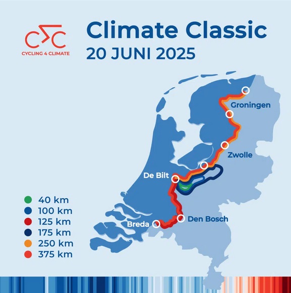 Eva and Theo are participating in the Cycling 4 Climate tour. This will take place on June 20. The route runs along the Dutch coast, unless we prevent further global warming. Will you join? The route runs from Breda to Groningen, but shorter routes are also possible. The more participants the better to get attention for this issue, so we ask you to join us.
