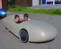 Quest ontwerper en rijder Allert Jacobs rijdt naast Quest ook graag tandem. Daartoe heeft hij diverse toer- en wedstrijdtandems gebouwd. Omdat de Quest toch het lekkerste rijdt is de Quest in tandemuitvoering dan een logische stap. Rug-aan-rug of zij-aan-zij? Voor beide concepten valt wat te zeggen, maar zij-aan-zij leek ons het leukst. Om het "oermodel" (plug) te maken is als basis een quest in de lengte doorgezaagd en zijn de delen op 50 cm (schouderbreedte) weer aan elkaar gemaakt. Het tussenstuk is opgevuld en de neusrondingen en hoofdspoilers zijn aangepast. Van deze plug is een negatieve mal gemaakt waarin de fietscarrosserie gemaakt kan worden. Voor zover is het werk al gedaan. De uiteindelijke carrosserie moet nog gemaakt worden, en daarin ook het fietsgedeelte. De fiets krijgt sturende en geremde voorwielen in open wielkasten omdat met de extra breedte ook wel wat extra wendbaarheid gewenst is. De voorwielen worden gestuurd met een stuurhandel in het midden van de fiets die in de lengterichting van de fiets bewogen kan worden. Hierdoor kunnen beide rijders het stuur bedienen zonder van zitpositie te wisselen. De fiets krijgt net als de quest twee 26" achterwielen die onafhankelijk van elkaar aangedreven gaan worden. Iedere rijder kan dus zijn/haar eigen verzet kiezen (of freewheelen). Er zijn geen plannen om deze fiets in productie te nemen, het moet voorlopig gezien worden als een studiemodel. We hopen de (on)mogelijkheden te ontdekken van een 126 cm breede fiets. Wie weet, een fiets met twee rijders is voldoende stabiel voor een zeiltje, een sturen en de ander bediend het zeil, parijs brest 2011, op fietsvakantie met je moeder, we zullen het zien, in ieder geval veel fietsplezier.